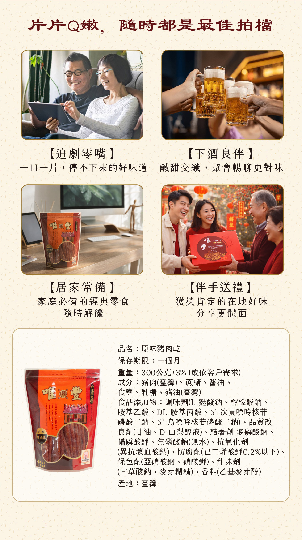 保存方式 : 請避免高溫、潮溼,拆封後請儘早食用,維持產品最佳口感。